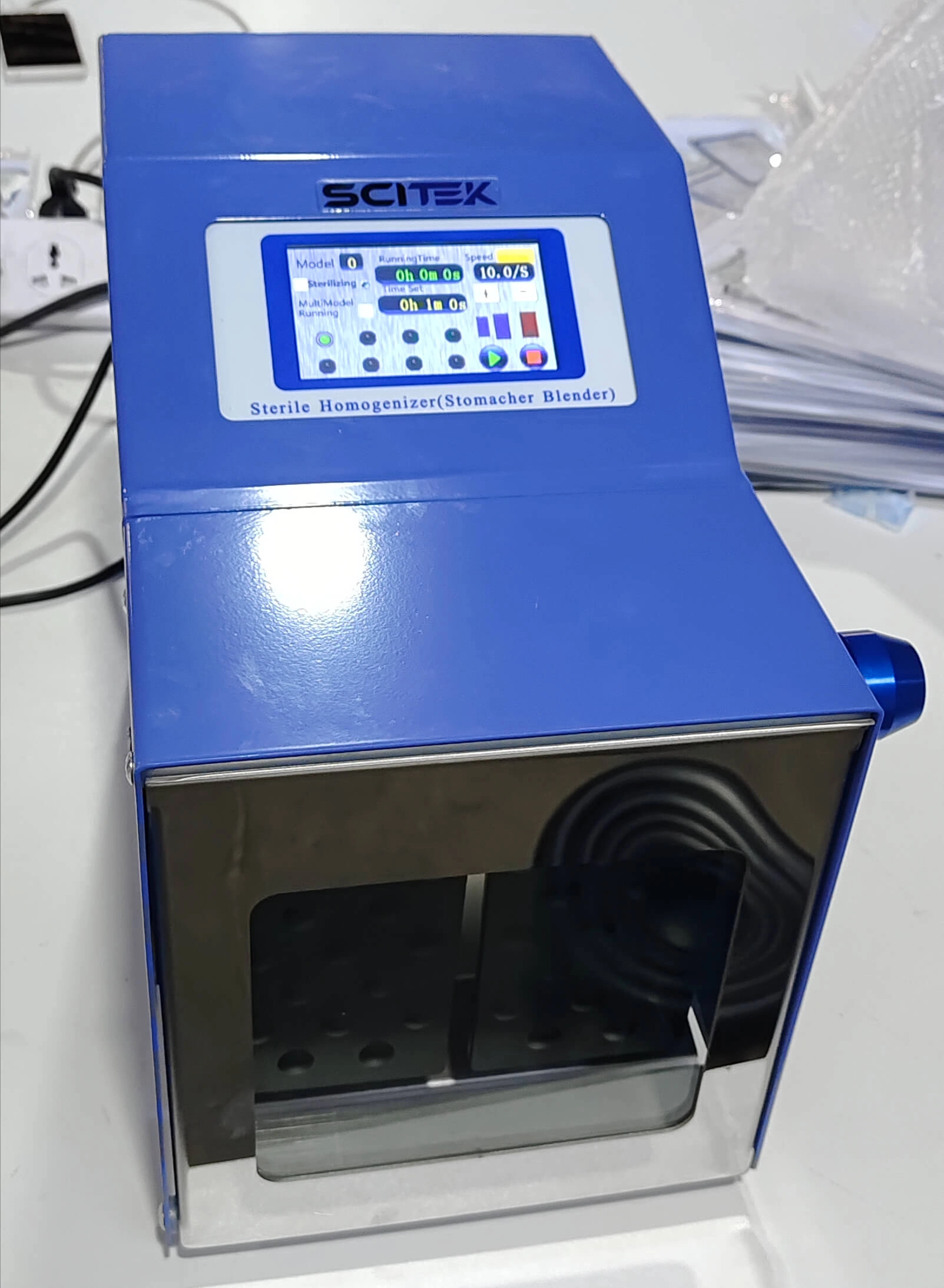 - The sample is packed in a disposable sterile homogenization bag without contacting with the instrument.
