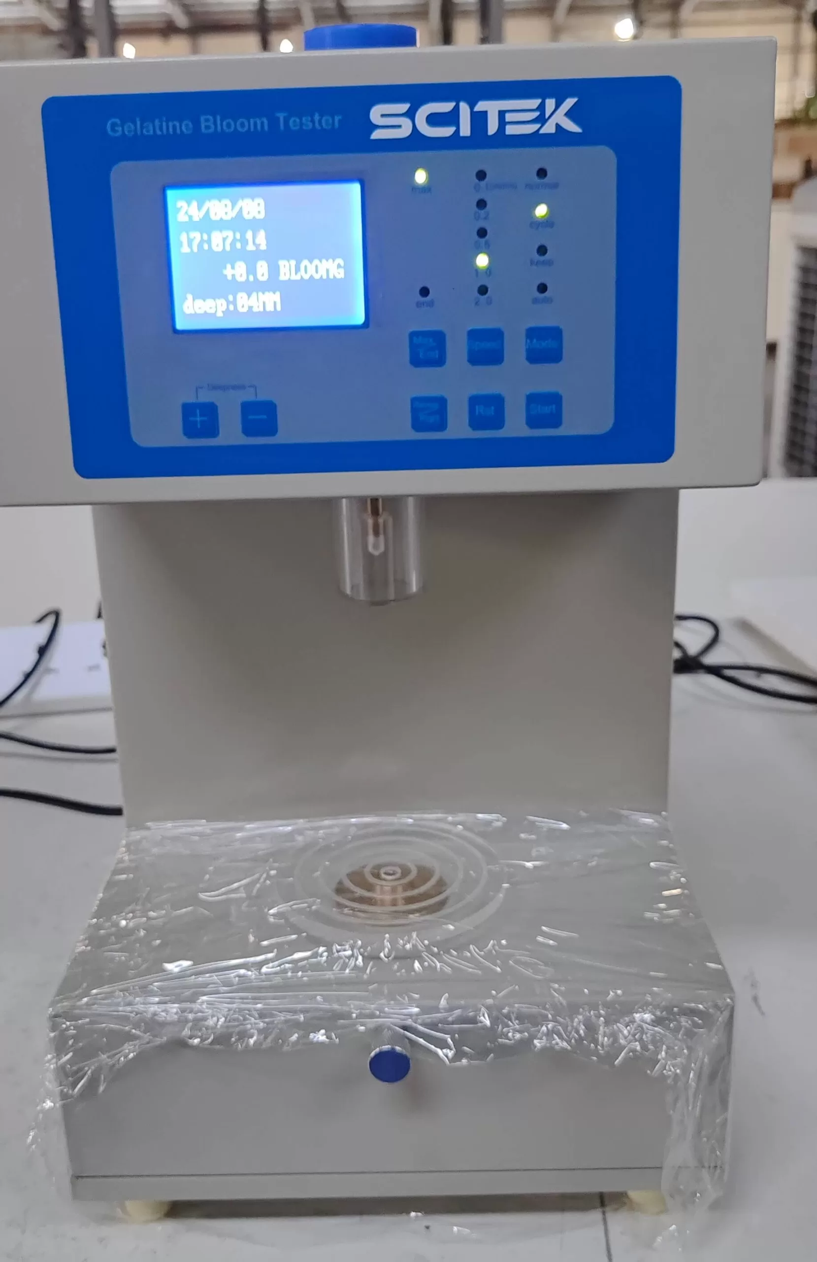 Gelatin gel strength tester is a device for measuring gelatinous substances’ gel strength or gelatin strength.